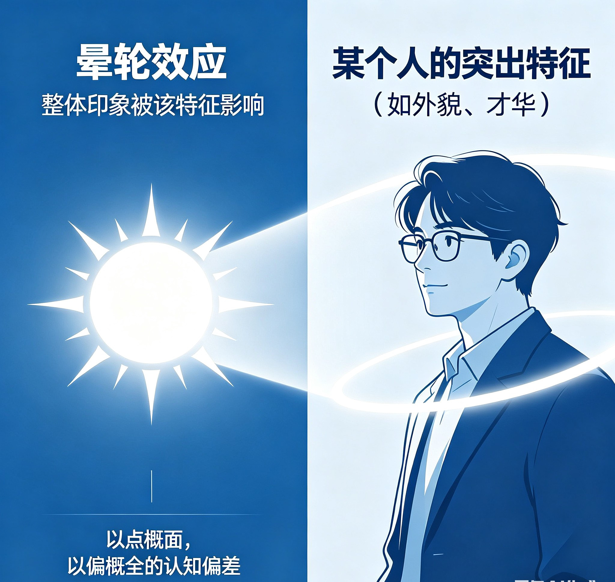 心理學小知識~暈輪效應 1. 它到底是什麼? 暈輪效應是美國心理學家桑代克提出的。 就像月亮周圍的光暈會擴散開,把整個月亮都籠罩住一樣: - 你看到一個人某一點特別突出 - 就不自覺把這種印象擴散到他所有方面 - 忽略其他真實信息,形成整體偏見 核心特點: - 以點概面 - 愛屋及烏,厭屋及烏 - 主觀>客觀,情緒>事實 2. 最典型的表現 (1)正向暈輪(喜歡→全好) - 長得好看 → 覺得他性格好、能力強、人品可靠 - 成績好 → 覺得他懂事、自律、不會犯錯 - 説話温柔 → 覺得他善良、體貼、值得信任 只要一個亮點夠亮,其他缺點都會被自動“美化”忽略。 (2)負向暈輪(討厭→全壞) 也叫掃帚星效應 / 惡魔效應 - 某件事做得不好 → 覺得這人幹啥都不行 - 一次遲到 → 覺得他整個人都不靠譜 - 一句話不順耳 → 覺得他人品有問題 一個黑點,就把整個人塗黑。 3. 生活裏隨處可見的例子 1. 追星 偶像長得帥/唱得好 → 覺得他完美無缺,犯錯也會洗白。 2. 相親/戀愛 對方長得好看、衣品好 → 自動腦補性格温柔、家境不錯、三觀契合。 3. 老師對學生 成績好的學生,犯點小錯也容易被原諒; 成績差的學生,做好事也容易被懷疑。 4. 職場面試 第一印象好 → 面試官覺得你能力強、態度好、適合崗位。 5. 購物/品牌 某個產品好用 → 覺得這個品牌所有東西都好,盲目購買。 4. 為什麼會產生暈輪效應? 1. 大腦偷懶 快速判斷比全面分析省力,屬於認知捷徑。 2. 情緒優先 喜歡或討厭的情緒,會先於理性判斷出現。 3. 信息不足 不瞭解全貌,只能靠最顯眼的特徵腦補。 4. 刻板印象加持 長得好=人品好、有錢=有能力,都是社會潛移默化的影響。 5. 暈輪效應的危害 - 看人不準,容易被表面迷惑 - 戀愛腦、盲目崇拜、錯信他人 - 評價不公,對人對事帶有偏見 - 決策失誤(招聘、交友、購物) 6. 怎麼避免被暈輪效應帶偏? 1. 別急着下結論,多觀察幾次再評價 2. 刻意關注相反證據,不要只看優點或只看缺點 3. 區分“某方面好”和“整個人好” 4. 多聽不同人的評價,減少單一印象 5. 提醒自己:再完美的人也有缺點,再差勁的人也有優點